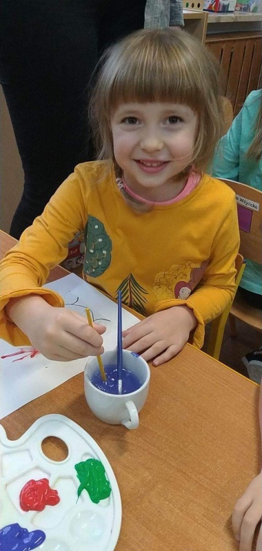 Grupa starszaków - praca na temat emocji z rozcieńczonych farb